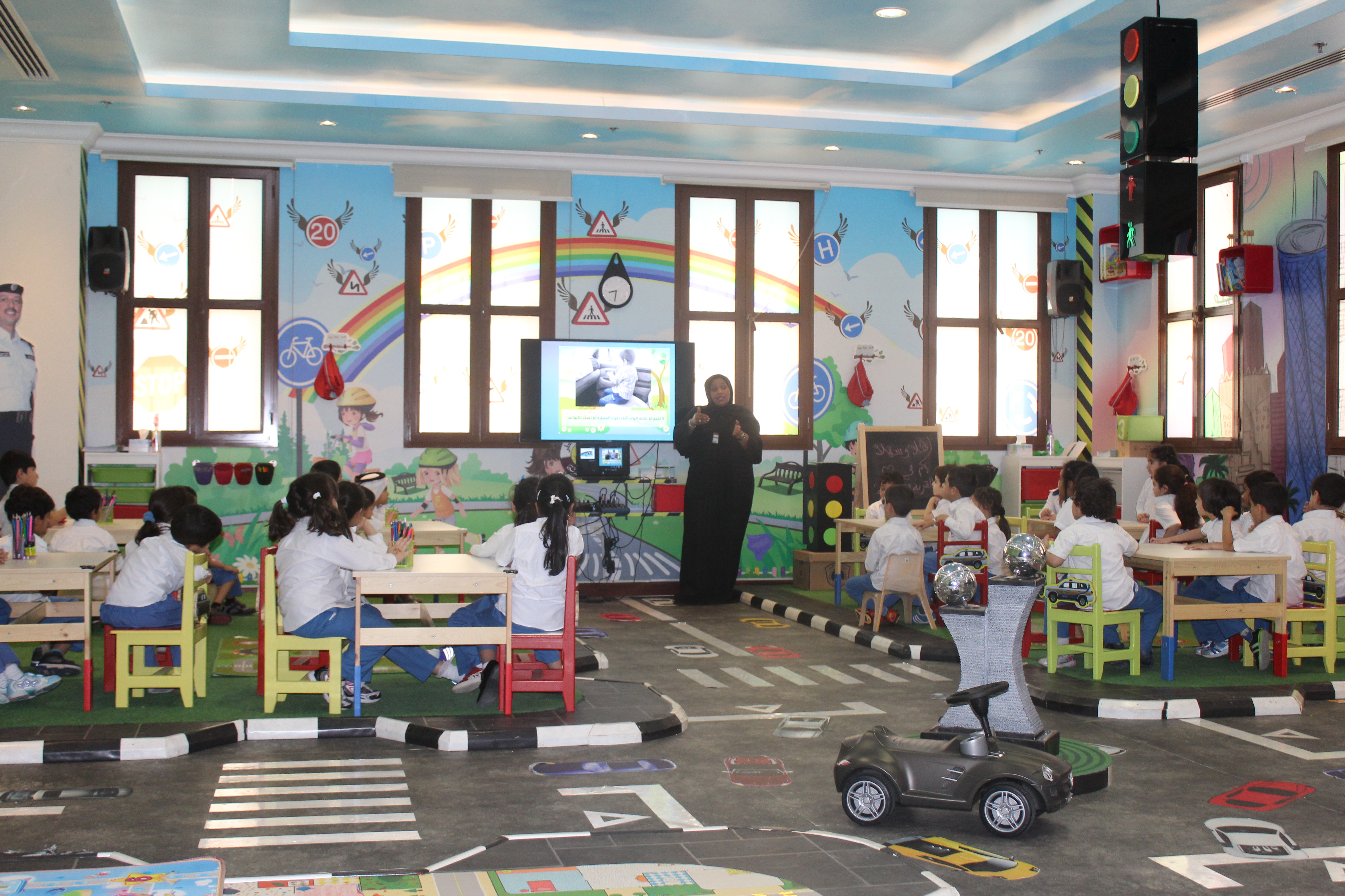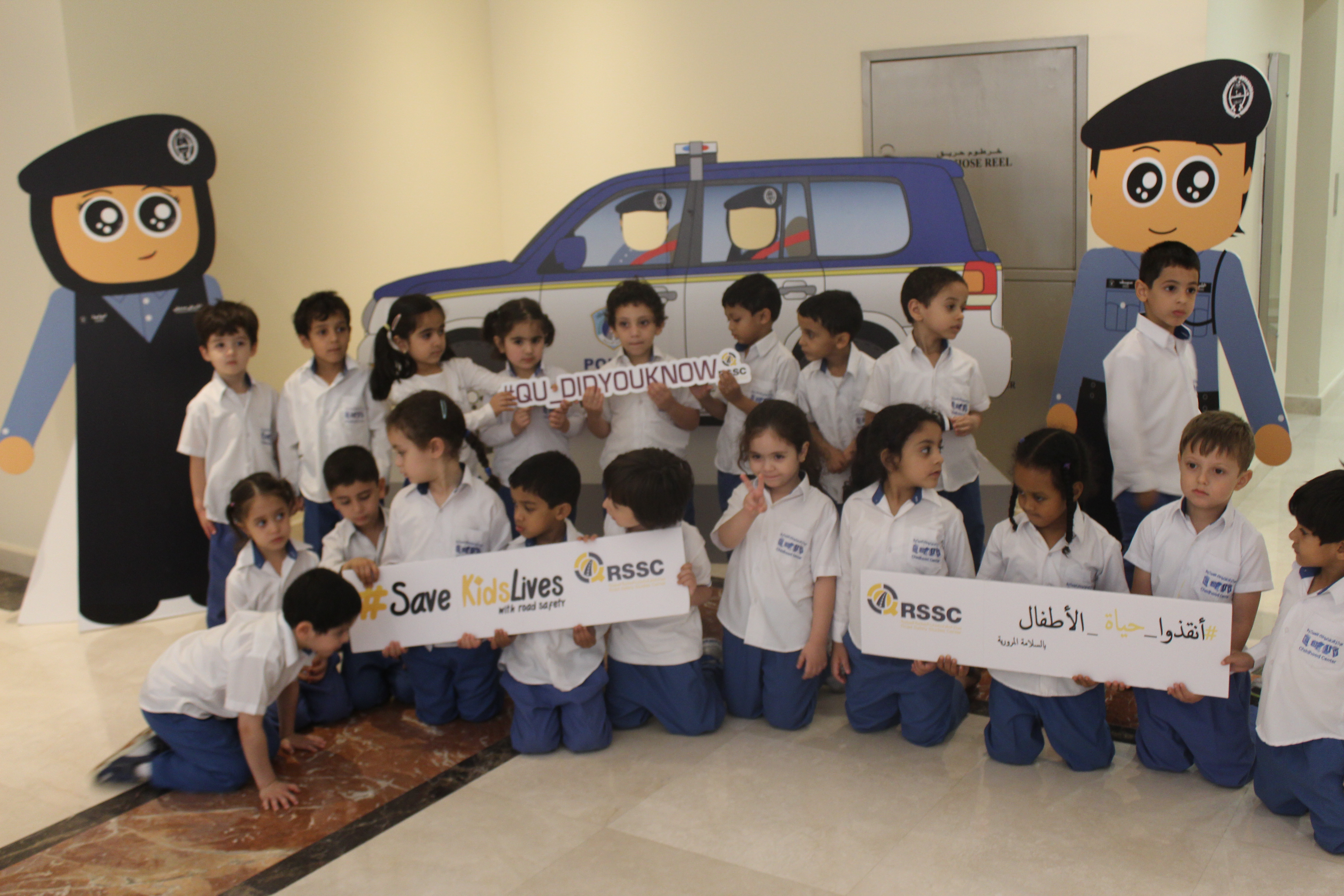 In line with the United Nation third Global Road Safety Week International Campaign Qatar Road Safety Studies Center (QRSSC) at Qatar University had arranged several activities for the Third united Nation Global Road Safety Week 2015. Believing in this year’s theme; #SaveKidsLives. Qatar Road Safety studies Center arrange an educational trip for Early Childhood Center (around 4-5 years old) to the Traffic village at traffic department.